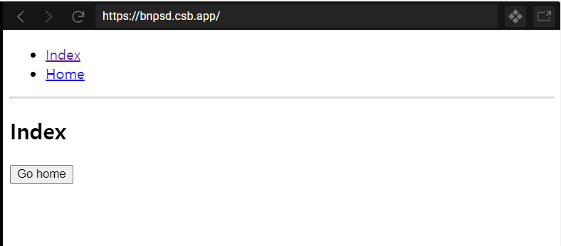 여기서 Go home 버튼을 누르면 history.push('/home')이 실행될 것이고 결과는 어떻게 되겠습니까?